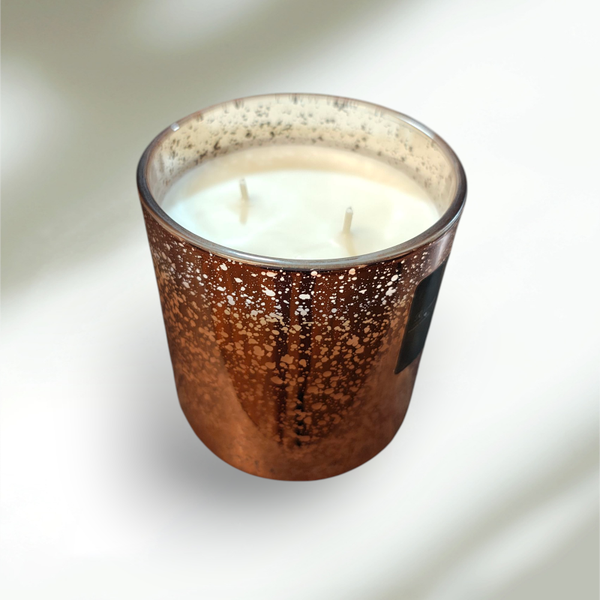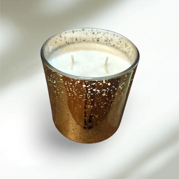 Magnifique bougie avec 350g de cire de soja et 2 mèches coton, dans un magnifique pot effet photophore gold ou rose gold !